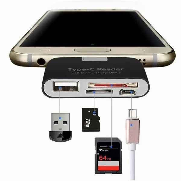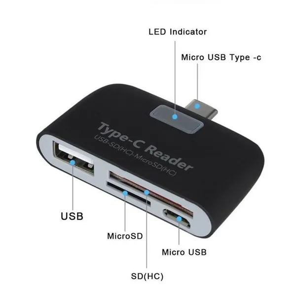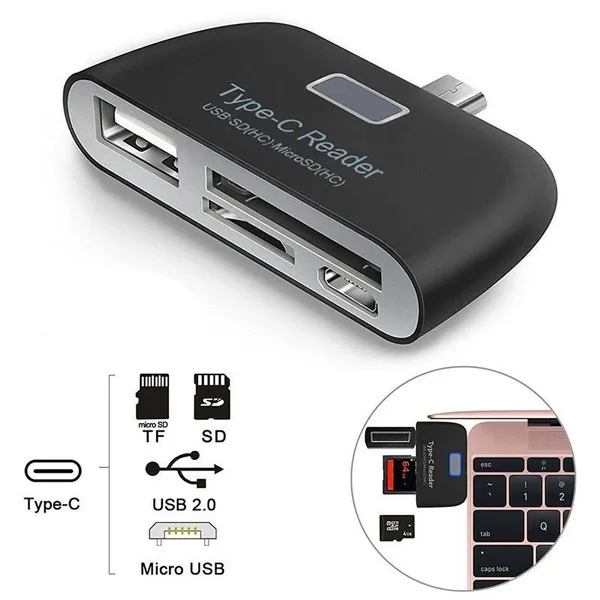 Multifunctional Smart 4 In 1 Laptop PC Durable Phone TF Micro SD With Micro USB Charge Port USB 3.1 Universal Type C Adapter OTG Card Reader