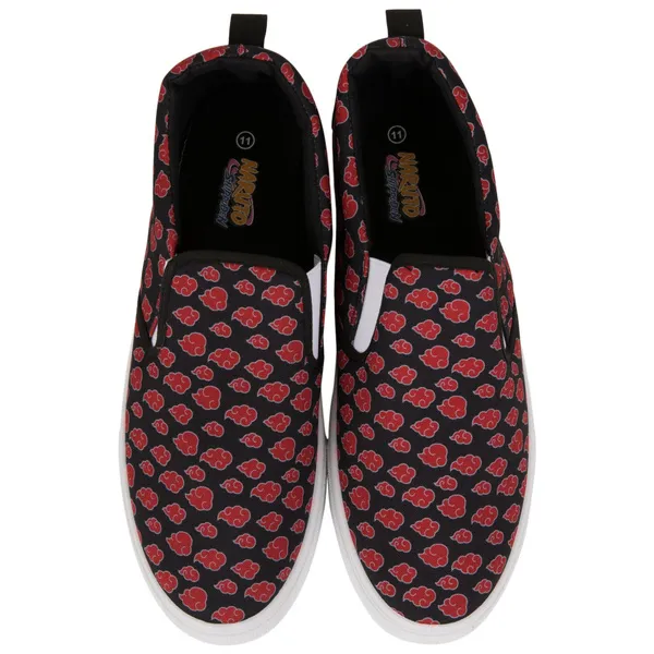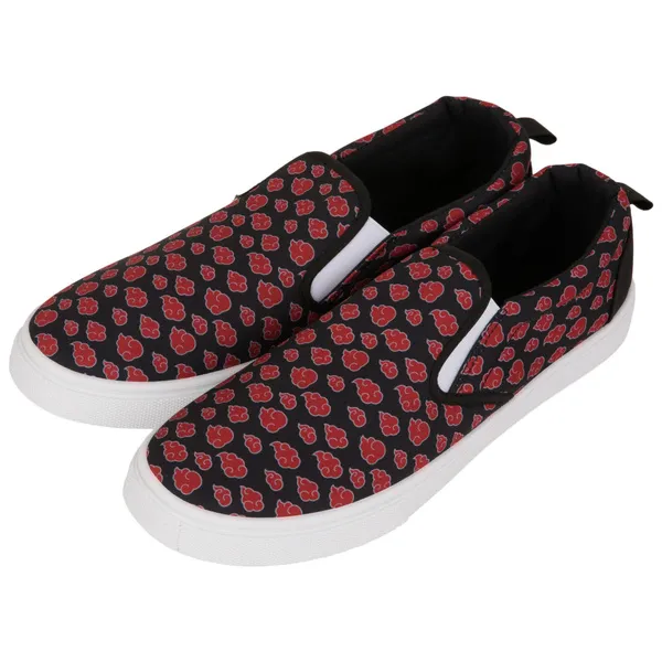 Get ready to Naruto Run faster than any of your friends and foes with these officially licensed Naruto Akatsuki Cloud Print Slip-On Shoes. These black and white Naruto Print Slip-On Shoes are made from canvas and feature a classic Naruto Akatsuki Cloud All-Over Print design.