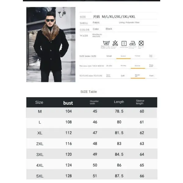 Color: Black Product category: Coats Sizes: M, L, XL, XXL, 3XL, 4XL, 5XL Fit: Fitted type Belt or Not: No belt Lining: Polyester Thick: Thickened Placket: Single-breasted Main fabric composition: polyester (polyester) Style details: contrasting Clothing hem design: straight hem Style: Stylish Craft: Collage/Splicing