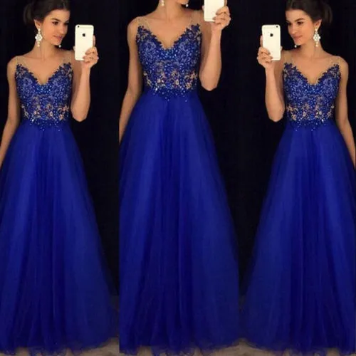 Hello! Welcome to our store! Quality is the first with best service. customers all are our friends. Main Color: AS The Picture show New in Fashion,Women fashion dress Style:womens sleeveless Cocktail Party Evening Dress Formal Prom Dresses Silhouette:A-line Neckline:Straps Hemline/Train:Floor-length Sleeve Length:Sleeveless Back Details:Zipper Embellishment:Rhinestone, Appliques Fabric:Tulle Package included: 1x dress Size Chart: There is 2-3% difference according to manual measurement. please check the measurement chart carefully before you buy the item. Please note that slight color difference should be acceptable due to the light and screen.