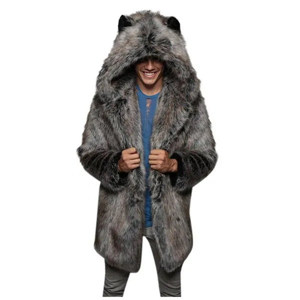 Fabric name: Artificial fur Color: gray, black Sleeve type: regular sleeve Size: XS, S, M, L, XL, XXL, XXXL, XXXXL, 5XL Length: Medium length version (65cm<length ≤ 80cm) Style type: Street trendsetter Cross border style type: comfortable and casual Applicable age group: adult Collar type: hooded Sleeve length: Long sleeves Style: Gothic