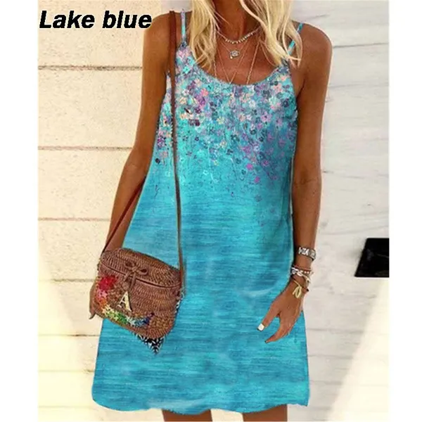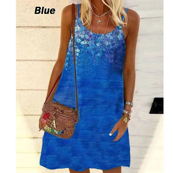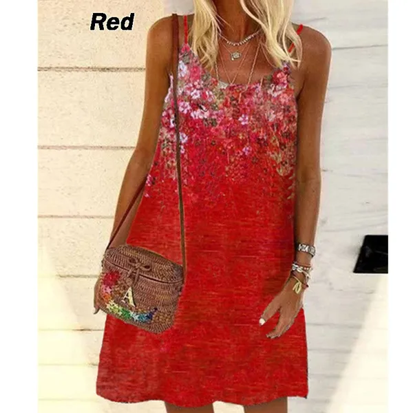 New Summer Fashion Floral Printed Dress For Women Sleeveless Casual Sling Dresses Knee Length Plus Size Spaghetti Strap Dress