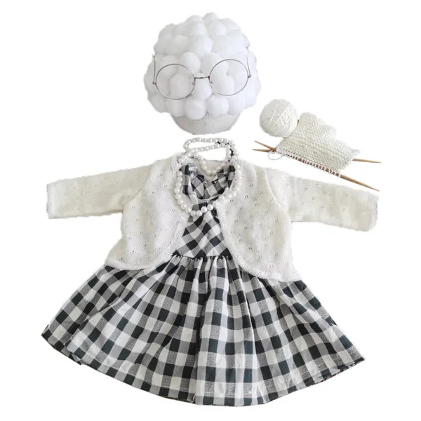 100% brand new and high quality Feature: Soft, Comfortable and easy to wear. It will bring you valuable memory. Very impressive and unique. Special design give your lovely baby free and unbound feeling. This is a newborn size and is meant only for photo prop. Babies should be supervised at all times whilst in props. Specification: Material:Cotton Blend, polyester Size: one size Suitable for 3-5 month old baby Color: See the pictures Applies to: Baby photography props Quantity: 1 Set Note: 1.Transition: 1cm=10mm=0.39inch 2.Please allow 0-1cm error due to manual measurement. pls make sure you do not mind before you bid. 3.Due to the difference between different monitors, the picture may not reflect the actual color of the item. Thank you! Package includes: 1×Hat 1×Knitted Jacket 1×Skirt 1×Pearl Necklace 1 × Glasses 1 Set×Wool Knitting Props