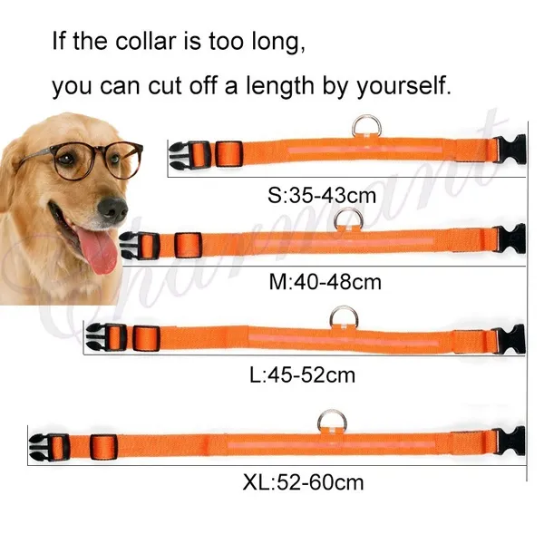 Multi-colors for you to choose. Adjustable straps to fit most pet dog, cat. S = Width 2.5CM * Length (35-43) CM M = Width 2.5CM * Length (40-48) CM L = Width 2.5CM * Length (45-52) CM XL = Width 2.5CM * Length (52-60) CM Color:Red,Blue,Yellow,Pink,Black,Green,Orange. Flashing mode:Long light,Flash, Slow flash, Close( via switch control ) Battery:2PCS CR2032 button battery -driven (60-80 hours, normal 2-3 months ; battery can be replaceable , convenience stores or supermarkets are available .)
