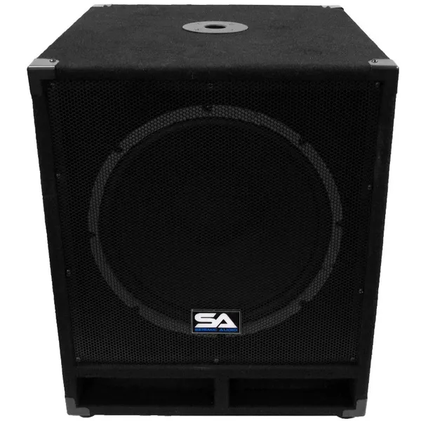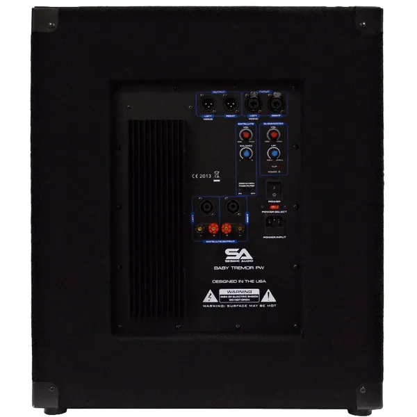MODEL: Baby Tremor PW (Pair) CONTENTS: Pair of Powered 15" Subwoofer Cabinet CONDITION: New APPLICATION: Subwoofer / PA Subwoofer / DJ Subwoofer ACTIVE/PASSIVE: Powered / Active WOOFER: 15" WOOFER SPECS: 70 oz Magnet and 3" Voice Coil POWER: 300 Watts RMS; 600 Watts Peak FREQUENCY RESPONSE: 35 Hz - 800 Hz SENSITIVITY: 98 dB SPL: 108 dB - Continuous LPF (LOW PASS FILTER): 40 Hz - 300 Hz CONNECTORS: Two Line Input/Output - XLR Combo / Male XLR NOMINAL IMPEDANCE: 8 Ohms PORTS: Yes GRILL: Full Metal Grill HANDLES: Recessed Metal COVERING: Black Carpet with Black Metal Corners ENCLOSURE: 5/8" Plywood Construction POLE MOUNT: Yes HEIGHT: 23.25" WIDTH: 20.75" DEPTH: 19.75" WEIGHT: 73 lbs per Cabinet WARRANTY: One Year Warranty SPECIAL FEATURES: Can be Daisy Chained SPECIAL FEATURES: 3 Channel Amplifier Built In AMPLIFIER TYPE: Class AB POWER SELECT: 110V-120V or 22V-240V Power Supply SPECIAL FEATURES: Two Channel Satellite Power Output - 8 Ohm - 2 x 150 Watts SPECIAL FEATURES: Balance, Clip Indicator Light, Power Indicator Light SPECIAL FEATURES : Separate Sub and Satellite Volume - Switch for 200 Hz High Pass Filter