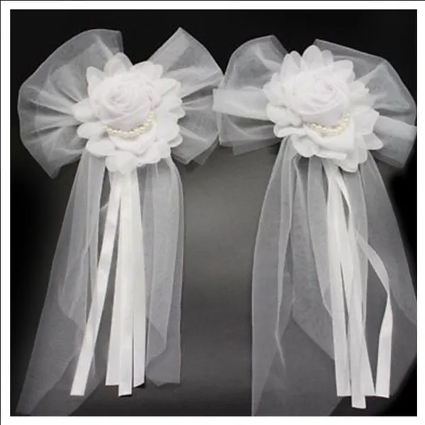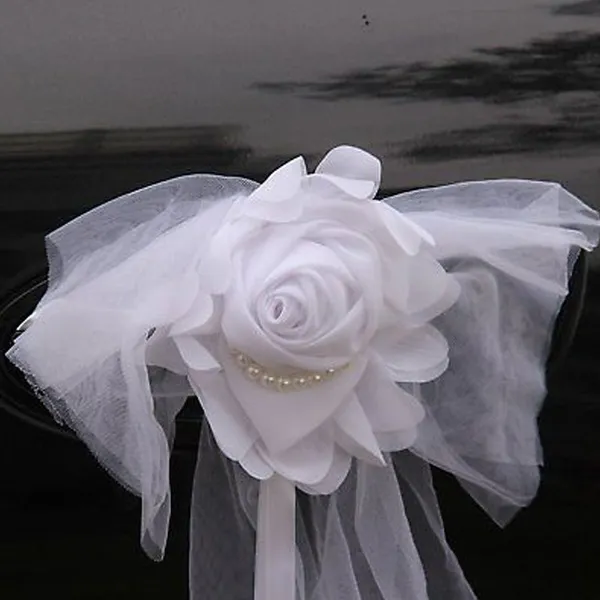 Pearl Bud Silk Ribbons Flower Car Door Handles Rearview Mirror DIY Flower Bouquet Wedding Decoration Gift Present