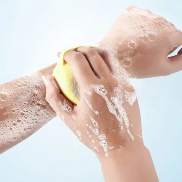 2-in-1 scrubber distributes soap and skin massages. Made of silicone material, good elasticity and comfortable. Clean every part of the skin, compact size. Easy to use, fill the foaming with liquid soap and squeeze the baby. Large filling capacity, continuous use for up to one week at a time. Material: Safe Silicone Color: Yellow, Pink, Blue Size: As the Pictures Shown Package:1 PCS