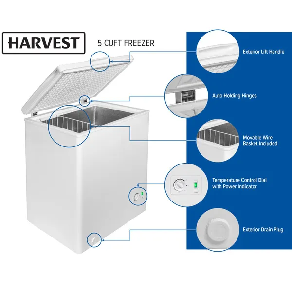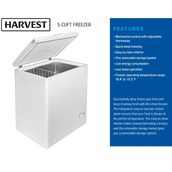 The Plastic Development Group 5 Cubic Foot Manual Deep Freeze Chest Freezer is the ultimate solution to food storage needs. This chest freezer is one of the most popular on the market due to its excellent energy efficiency and superb temperature quality. This chic unit comes with a generous 5 cubic feet (141.6 liters) of storage space making it the ideal freezer for families, and the perfect size for your garage or basement.. Your electricity bills will be lighter due to the freezer’s efficient insulated cabinet and lid make sure the warm outside air won’t invade the storage area. This freezer storage is only 27.2 inches wide and doesn't take much space and sits nicely flush against a wall. Keeping your most popular food items together and well organized is a breeze with the removable storage basket. That way, you can customize your storage container however you see fit. This dependable appliance features a state-of-the-art mechanical thermostat and control panel that is easy to operate to ensure your frozen foods are always at the ideal temperature. The interior liner is designed for quick and easy cleaning, especially when it comes to manual defrosting.
