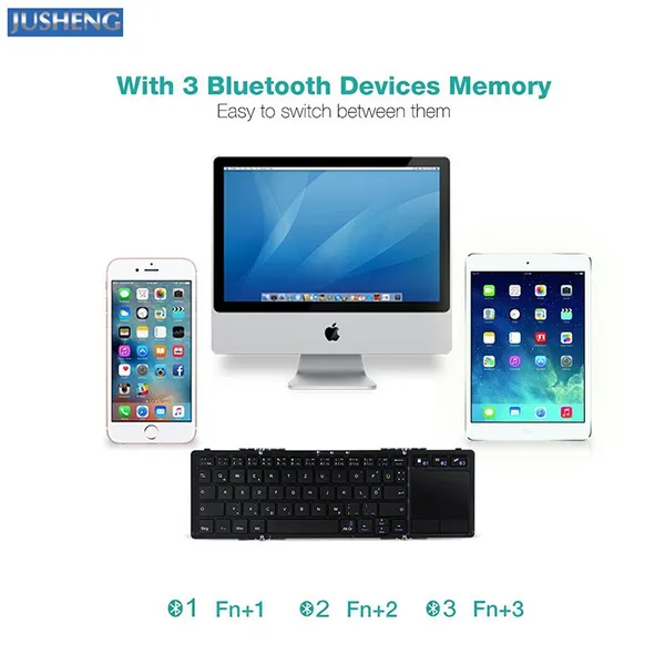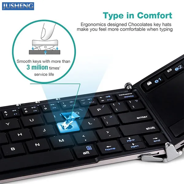 EC Technology tri-folding bluetooth keyboard, add more functionality to satisfy everyone's need. Longer battery life, wide compatibility, touchpad, triple bluetooth channels, tri-folds and mini packed size, they all specifically designed for easy and portable daily use.