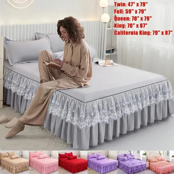 Welcome to our shop! 100% brand new and high quality ?Note: #1, Package includes: 3pc= 1 bed skirt + 2 Pillowcases 1pc=1 bed skirt #2, Fabric: Polyester&Cotton #3, Color: 7colors #4, Size: Twin;Full; Queen; King; california king; #5, Elastic Bed Skirt ?Twin : 1xBed skirt: 47" x 79"(120 x 200cm) 2xPillowcase: 19" x 29" (48 x 74cm) ( Optional) ?Full: 1xBed skirt: 59" x 79" (150 x 200cm) 2xPillowcase: 19" x 29" (48 x 74cm) ( Optional) ?Queen: 1xBed skirt: 70" x79" (180 x 200cm) 2xPillowcase: 19" x 29" (48 x 74cm) ( Optional) ?King: 1xBed skirt: 70" x87" (180 x 220cm) 2xPillowcase: 19" x 29" (48 x 74cm) ( Optional) ?California King: 1xBed skirt: 79" x 87"(200 x 220cm) 2xPillowcase: 19" x 29" (48 x 74cm) ( Optional) ¡ñKindly Tip: 1. Conversion: 1 inch= 2.54cm Item Measure by hand, it could be 1-3cm different. hope you can understanding, will be sincerely appreciated. 2 .Please be reminded that due lighting effects, monitor's brightness/ contrast settings etc, there could be some slight differences in the color tone of the website's photo and the actual item.