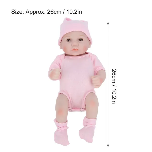 Feature: 1. Made of high‑quality materials‑soft‑touch head and limbs and weighted body, bring vivid baby feel, safe for your child and the environment. 2. Simulation appearance, exquisite and lifelike from her delicate face to her little feet. 3. Can be used as holiday gifts, birthday gifts, children's toys, make children have fun. 4. Hands and feet are detachable and can be washed, and the clothes can be taken off and replaced. 5. This doll is not only a toy, but also an exquisite collection of adult collectors. Specification: Item Type: Baby Doll Material: Silicone Gender: Girl Optional Color: , Blue Eyes: Open Eyes, Close Eyes(Optional) Size: Approx. 26cm / 10.2in Product Description: All-silicone doll, hands and feet are detachable and can be washed, and the clothes can be taken off and replaced Use: Take a bath with your baby, nursing guides, baby toys Package List: 1 x Baby Doll Note: 1. Please allow 1‑2cm error due to manual measurement. Thanks for your understanding. 2. Monitors are not calibrated same, item color displayed in photos may be showing slightly different from the real object. Please take the real one as standard.