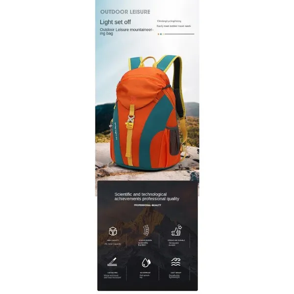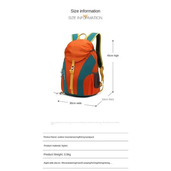 Pattern: Solid color Material texture: polyester Applicable sports: mountaineering, hiking, camping, cycling Applicable scenario: Outdoor sports Color: see figure Product category: Sports backpack Applicable gender: neutral/both male and female Material: Nylon Size: 28cm wide, 16cm thick, 44cm high Capacity: 25L