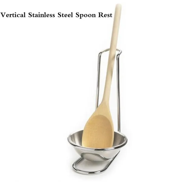 Vertical spoon holder Takes up less space than lay-flat spoon rest Made of stainless steel Measures :( 18 x 10.5 cm ) color:as show Package includes: 1 * spoon rest holder