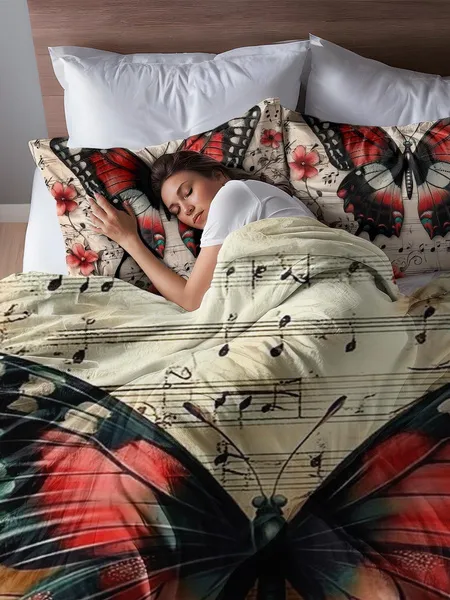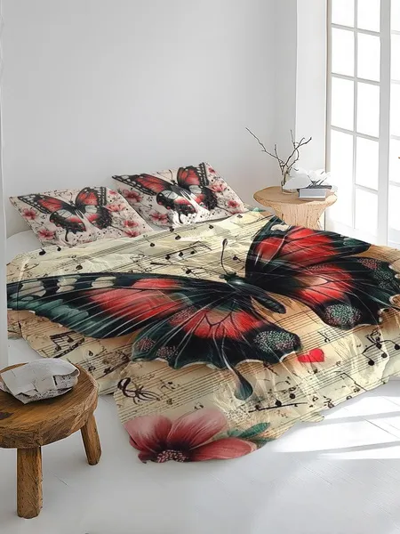 Three-piece fluffy printed double bed set, soft, comfortable and breathable bedding set, suitable for all seasons (without sheets, without fillers)