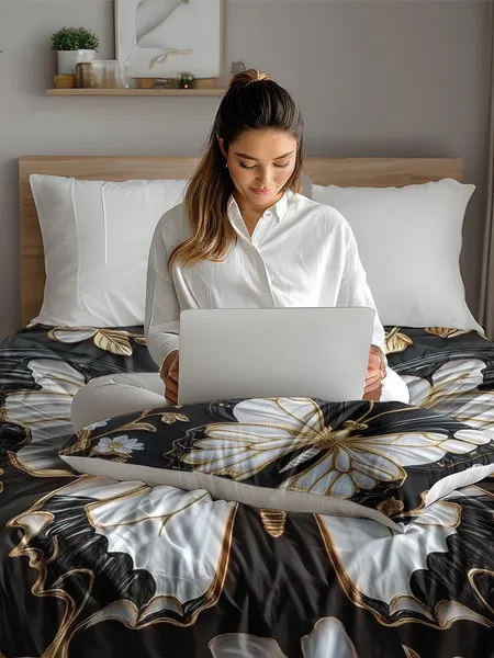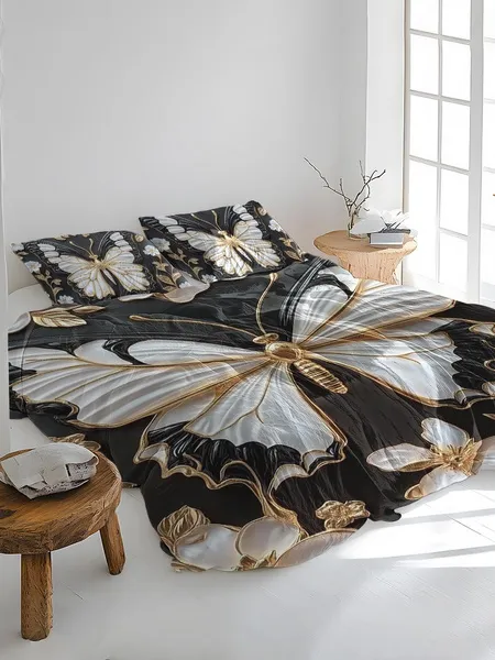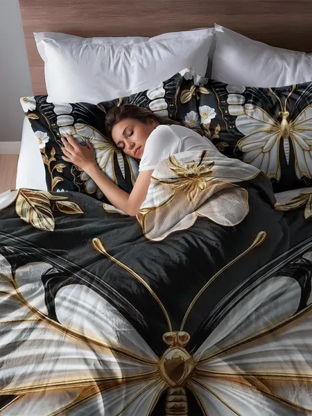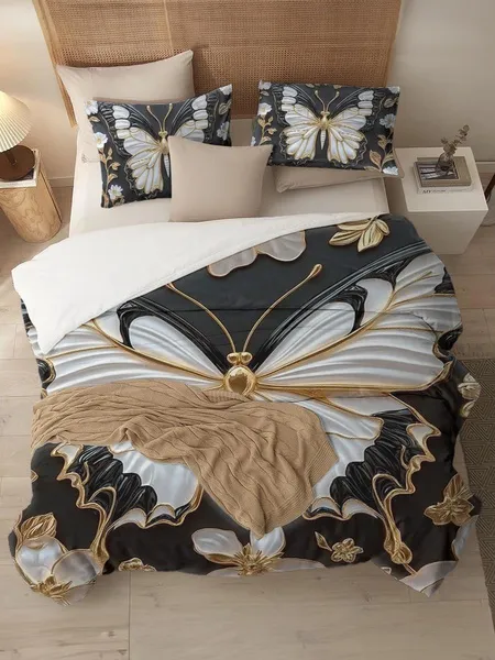 Three-piece fluffy printed double bed set, soft, comfortable and breathable bedding set, suitable for all seasons (without sheets, without fillers)