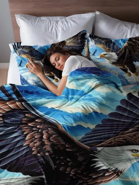 Three-piece fluffy printed double bed set, soft, comfortable and breathable bedding set, suitable for all seasons (without sheets, without fillers)