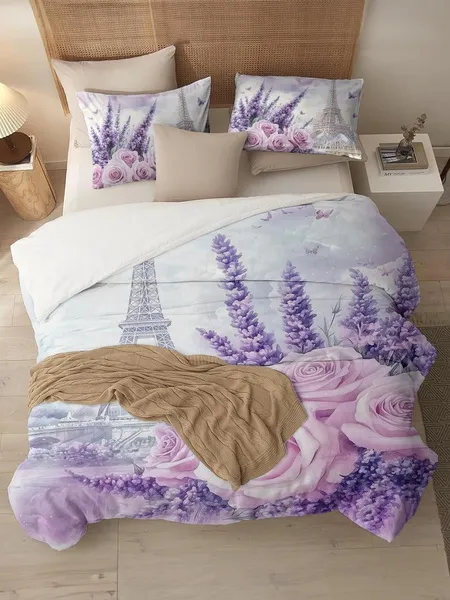 Three-piece fluffy printed double bed set, soft, comfortable and breathable bedding set, suitable for all seasons (without sheets, without fillers)