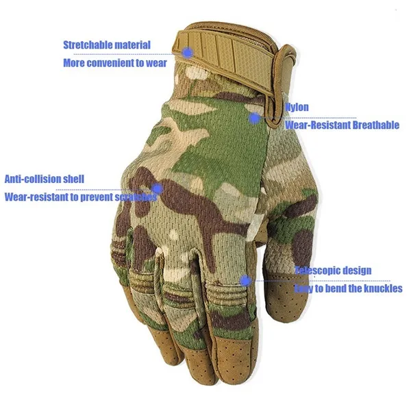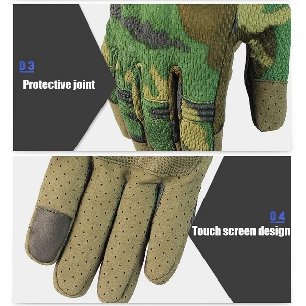 Professional design Tactical Gloves Features: Use high-quality microfiber fabric, can buffered rubber knuckle. Reinforcement panel an palm provides added durability. Provide complete protection suitable for any occasion, as tactical gloves, military gloves, hunting gloves, Protective Gears motorcycle gloves, driving gloves, Hiking Gloves , work gloves, Fishing Gloves , Running Gloves , Riding Gloves , Garden Gloves , Protective Clothing and so on. Product details: Material: Microfiber, Nylon, Rubber Knuckle Color: Black, Green, Brown,Camouflage Sand,Camouflage Green,Forest Camouflage Size: S/M/L/XL Due to manual measurement, it allows 0.12(in) discrepancy Package Includes:1 pair of gloves