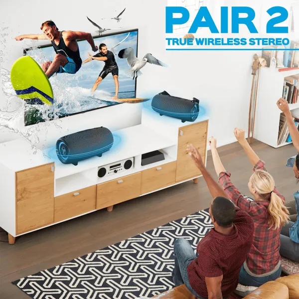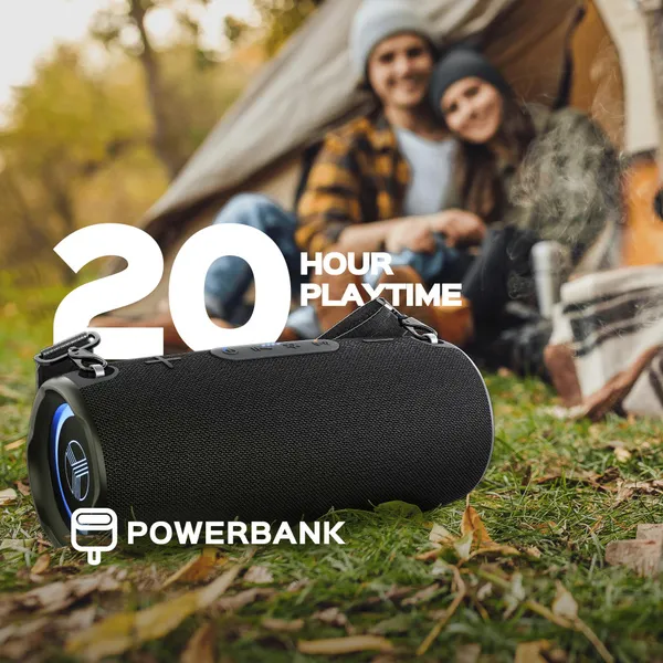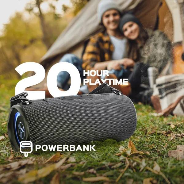 TREBLAB HD-Max - Large Bluetooth Speaker, Loud 60W Stereo Sound, Powerful Bass, 20H Battery, IPX7 Waterproof, Powerbank, USB-C, RGB Lights, Portable Wireless Speaker with Dual Pairing for Outdoors