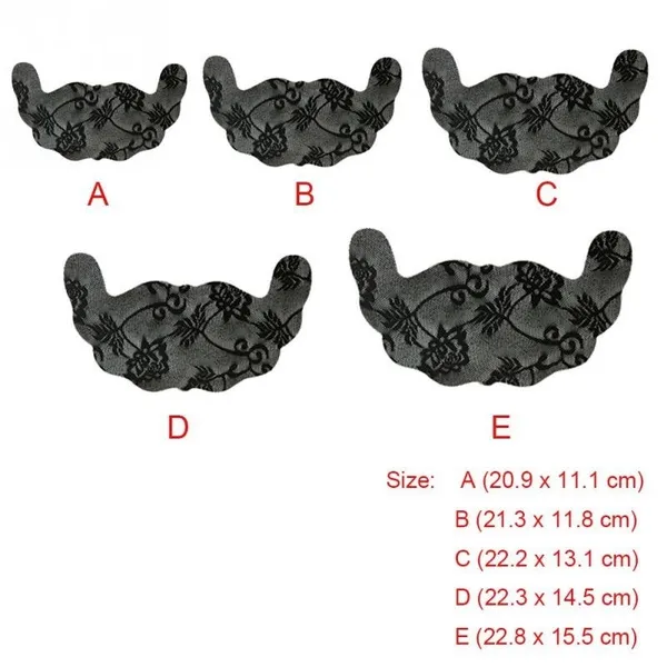 Specifications: Material: lace Color: black, Flesh Tints Use: one-time use Size: XS---A (20.9 x 11.1 cm) S----B (21.3 x 11.8 cm) M---C (22.2 x 13.1 cm) L----D (22.3 x 14.5 cm) XL---E (22.8 x 15.5 cm) How-to-use: 1. Wash your hands and chest skin before use, and let the skin dry before you start using it. 2. Do not apply moisturizers and other skin care products on the chest before use, so as not to reduce the stickiness of the chest stickers and affect the firmness of the paste. 3. Gently peel the white release paper covered on the back of the product along the opening. 4. Before standing in front of the mirror, align the dust film in the middle of the back of the nipple with the RT position, gently attach the cloth to the skin, and then gently massage the chest to make the nipple and skin intact. You have to be affixed together, and the other nipple can repeat this action. 5. When you tear it off, hold the chest with one hand and gently peel off the edge of the nipple with the other hand until the whole piece is torn off. The movement should be gentle, and the tearing will cause skin injury. 6. After use, please discard the nipples in the trash can. This is a one-time use of chest products. Package Included: 1 Pair x Breast Petals Note: 1. Do not use during lactation. 2. Do not use if the adhesive part is damaged. 3. Do not use women with extremely sensitive skin.