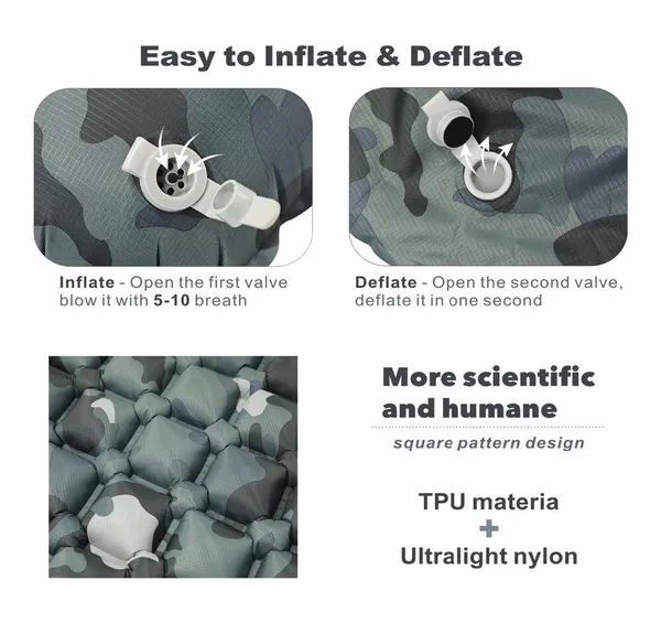 Ultralight Inflatable Sleeping Pad Fast Filling Air Bag Camping Mat Inflatable Mattress with Pillow Life Rescue Cushion Pad Bed