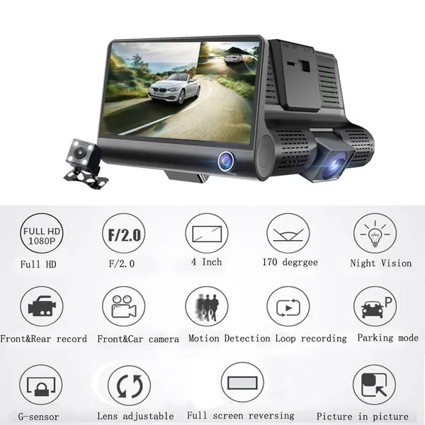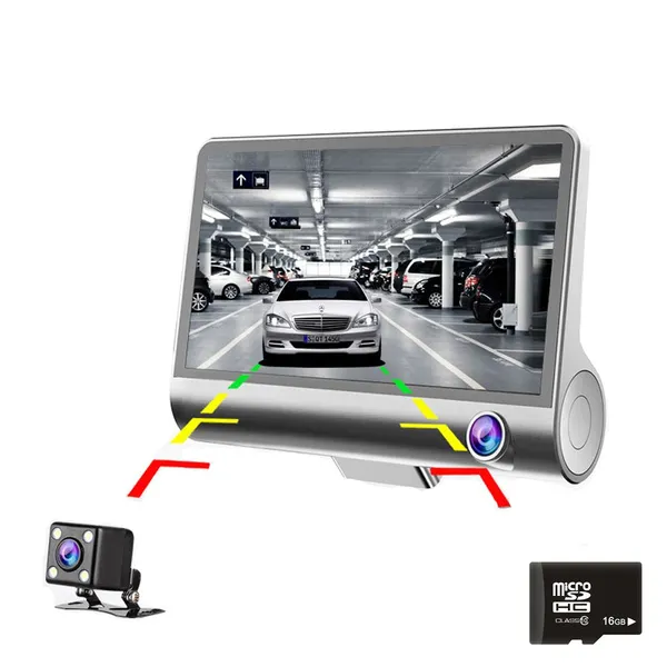 Cancel the reverse gear will be automatically restored to the front camera + car camera video mode, and the reverse gear does not affect the car inside and outside simultaneously recording.