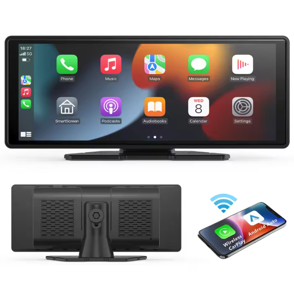 【Universal Compatibility】 Our CarPlay Screen is compatible with all vehicles. With this device, you can enjoy features like YouTube, podcasts, messages, Google Maps, navigation, Spotify, Apple Music, and Bluetooth calling, making it the ultimate hands-free device. It fits seamlessly into cars, SUVs, trucks, RVs, vans, and buses, working harmoniously with your car's existing radio system.