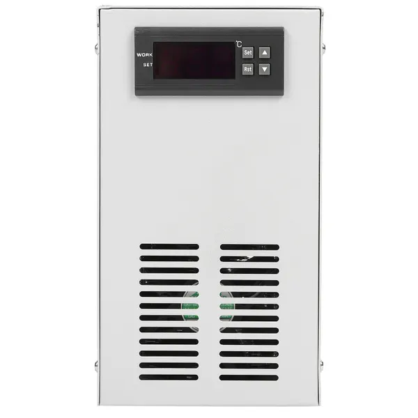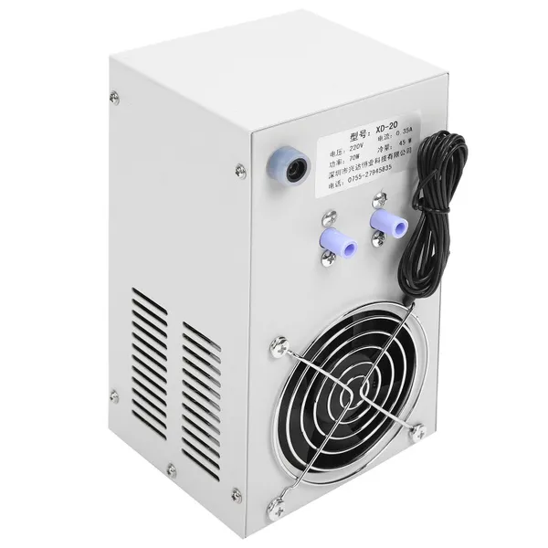 Feature It is suitable for plant farming shrimp farming farming coral farming and ornamental fish farming 2 Electronic refrigeration electronic component technology environmental no emissions no noise in refrigeration 3 Refrigeration has low energy consumption and is Simple operation and setting convenient to use 4 Real‑time monitoring of water temperature automatic constant temperature temperature display is 5 A variety of fields perfect use Suitable for water s and sea water s Specification Item Type Fish Temperature Cooling System Material ABS Silicone Metal Product Size Length Approx 110mm 4 3in Width Approx 112mm 4 4in Height Approx 200mm 7 9in Weight Approx 2438g 86oz US Plug 100 240V Power 70 72W Fit 8mm (Internal) Hose Water Chiller Is Suitable for Water 3L min Suitable Lifting Height of the Chiller Less Than 9 8ft Suitable Fish Size for Chiller 20L~30L Pump Power 3W Head 0 4 5m 3 4 9ft Rate 200L H Package List x Chiller x Chiller Plug x Chiller Adapter x x Plug x Hose 4 x Fixed Collar x Manual Note Keep a distance of more than 10cm 3 9in between the machine and the surrounding space to facilitate circulation