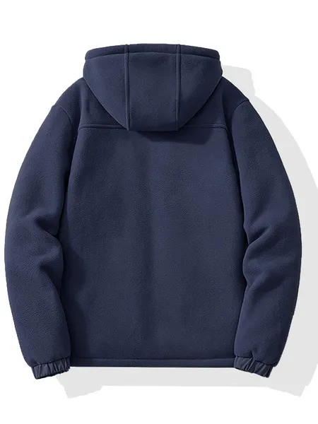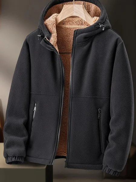 Warm & Cozy Polyester Blend Men's Fleece-Lined Hooded Jacket - Long Sleeve, Regular Fit, Casual Zip-Up Winter Coat with Pockets, Non-Transparent, Machine Washable, Solid Color