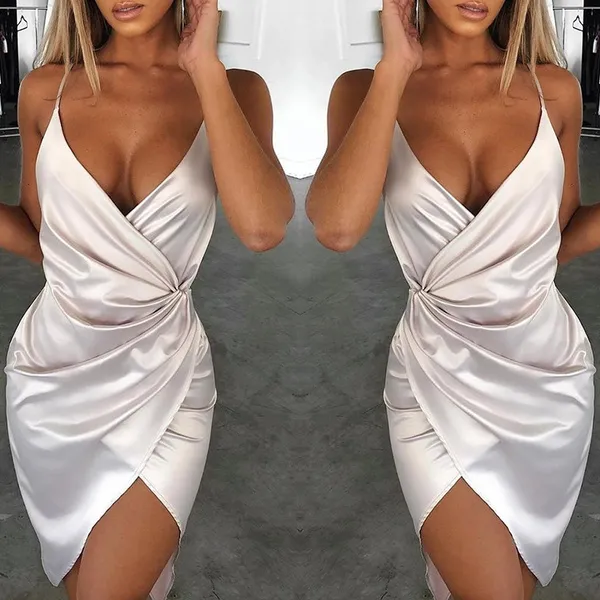 Welcome to our store! If you are satisfied with our product, please give us 5 stars! Thank you! Size: S,M,L,XL S: bust:36.6(inch); waist:28.7(inch); hips:37.6(inch); length:29.5(inch); M: bust:38.2(inch); waist:30.3(inch); hips:39.2(inch); length:29.9(inch); L: bust:39.8(inch); waist:31.9(inch); hips:40.7(inch); length:30.3(inch); XL: bust:41.3(inch); waist:33.5(inch); hips:42.3(inch); length:30.7(inch); Style:Fashion Pattern Type:Solid Material:Satin Neckline:Low Cut Sleeve Style:Spaghetti Strap Length:Asymmetrical Occasion:Party Package Include:1* Dress P.S. ALL THE SIZE ARE FOLLOWED BY ASIAN STANDARD Note: There might be 2-3% difference according to manual measurement. Please check the measurement chart carefully before you buy the item. +Please note that slight color difference should be acceptable due to the light and screen."