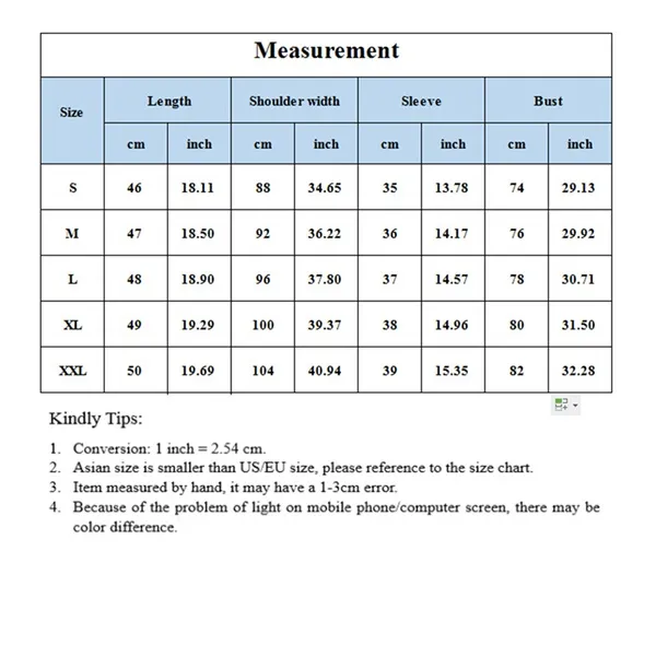 Material: Spandex Quantity: 1 pc tops+1 pc shorts Color: white,black,wine red Size: S/M/L/XL/XXL S: Length: 46cm Bust: 88cm Pants Length: 35cm Waist: 74cm M: Length: 47cm Bust: 92cm Pants Length: 36cm Waist: 76cm L: Length: 48cm Bust: 96cm Pants Length: 37cm Waist: 78cm XL: Length: 49cm Bust: 100cm Pants Length: 38cm Waist: 80cm XXL: Length: 50cm Bust: 104cm Pants Length: 39cm Waist: 82cm Note: Our size is Asian size usually will get one size smaller than US/EU size. We suggest you to choose a bit loose to avoid being too tight. Tips: 1.Due to the measurement of different size may exist 1-3cm error. 2.Due to the difference between different monitors, the picture may not reflect the actual color of the item. 3.We guarantee the style is the same as shown in the pictures, but not the same performance on different bodies as on the model.