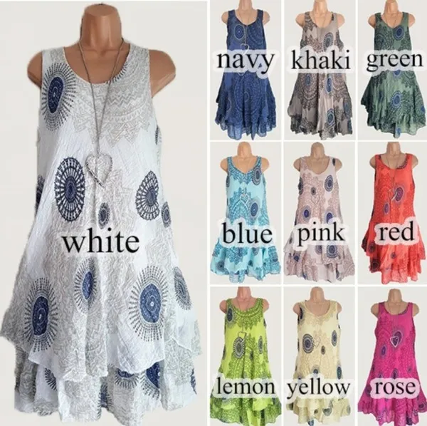 Condition: 100% brand new Size: S,M,L,XL,2XL,3XL,4XL,5XL Color:white,blue,navy blue,red,khaki,green Pattern: Printing Neckline: Round Neck Material: Dacron Style: Fashion ,Casual,Summer Sleeve Length: Sleeveless Weight: 0.15 kg P.S ALL THE SIZE ARE FOLLOWED BY ASIAN STANDARD Package Include: 1*Woman Dress Note: There might be 2-3% difference according to manual measurement.