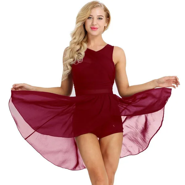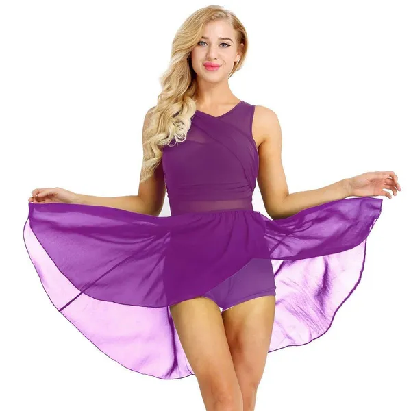 Set Include: 1x Women Dance Dress Condition: New with tag Material: Polyester + Chiffon Features: Women adult sleeveless leotard dance dress, pull on closure. Scoop neckline and cut out at back, attached 1 layer chiffon skirt with front slit. Good stretchy fabric, super soft and smooth, breathable, comfortable to wear. Suitable for dance class, gymnastic exercise, competition and performance, etc. Please check carefully with the size chart below before you place an order, hand or machine wash. Size Chart:The suggested age and height is just for your reference. If your measurement is floating between two sizes, advise choosing the larger size. (Measurements shown in the size chart refer to item measurements, not body.) Friendly Tips: The size is measured by hands, please allow minor error of measurement. Photo color might be a little different from the actual product due to color display of different monitors.