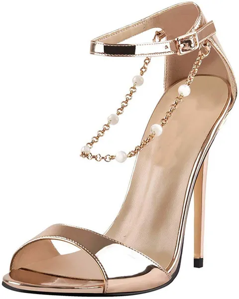 Rubber sole FASHION DESIGN--Open toe beaded chain ankle strappy sandals feature slim high heel and beaded chain decoration,elegant and comfortable for walking. BEST GIFTS--Stiletto champagne gold sandals is the most wished & gift Ideas for wife, daughter, girlfriend, lover.Love her, buy her onlymaker. Big size for wide feet are avaliable. OCCASION--This beaded chain single band sandals offer a fashion look and comfortable to walk around in all day. Suitable for casual, party, office, dating, evening, dancing, pair with jeans for casual use. Wear with a dress for a night out!