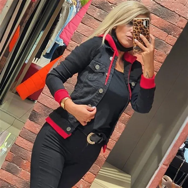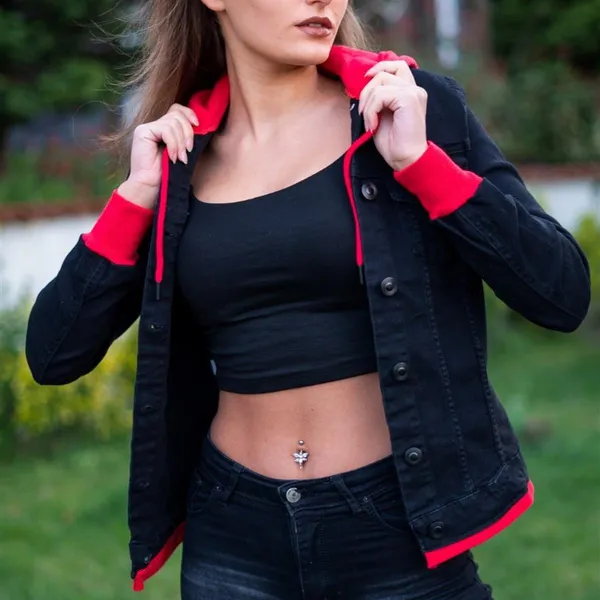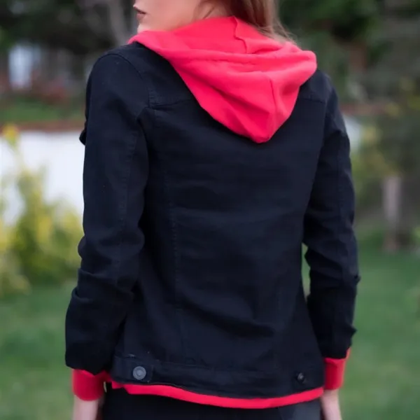 "Women's Fashion Denim Jacket Hooded Jeans Jacket 2889-Hooded Colorful Jeans Jacket Lady Jeans Jacket Features * Made of soft denim fabric. There is no attrition on the fabric. * 100% cotton. * It should not be washed above 30 degrees. * The product is on the product. The length of the product is 90 cm .. * You can use the four seasons with comfort."