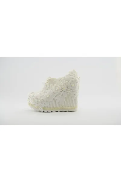 Womens Wedding Bride High Heels Platform Shoes for Woman Ladies Party Evening Dress Shoes Halloween Costume Shoes - Wedding dress Pearl white filler heel shoes.