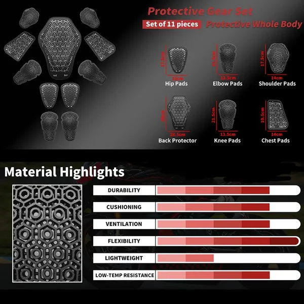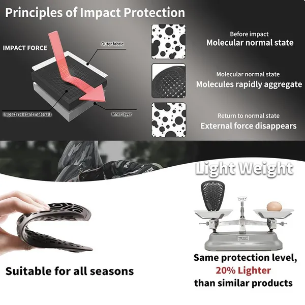 Color: Black Material: 100% TPV Specifications: Shoulder Pads*1 pair Characteristic: Lightweight: Easy to carry and store Breathability: Hollow design reduces stuffiness and maintains comfort Impact resistance: When subjected to external impact, it will quickly tighten and harden Durability: Wear resistant, can be used for a long time Convenience: Used for easy installation and disassembly inside clothing