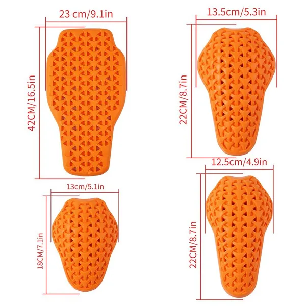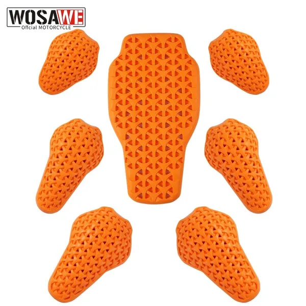 Description: WOSAWE One-Piece Detachable and Installable Breathable Thicken Back/Shoulder/Elbow/Knee Protective Pad Product Features: • Easy On/Off Integration: Designed for effortless attachment and removal within garments. • Enhanced Comfort: Offers super softness with high rebound properties. • Impact Protection: Effective shock absorption safeguards against falls and impacts. • Durability: Resistant to wear and tear, ensuring longevity. • Robust Defense: Provides maximum protection for the back/shoulder/knee/elbow and spine during activities. Specification: Colour: Orange Material: PU Weight: 313G/0.69LB(Back),192G/0.42LB(Knee),178G/0.39LB(Elbow),152G/0.34LB(Shoulder) Size: One Size Application: Motorcycle, Motocross, Cycling, Rock Climbing, Racing, Skiing, Skating, Skateboard and other outdoor sports