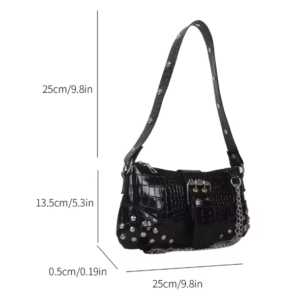 Women Fashion Shopping Bag Gothic Underarm Bag Cool Style Trendy Rock Girls Handbag Y2K Rivet for Travel Vacation Daily